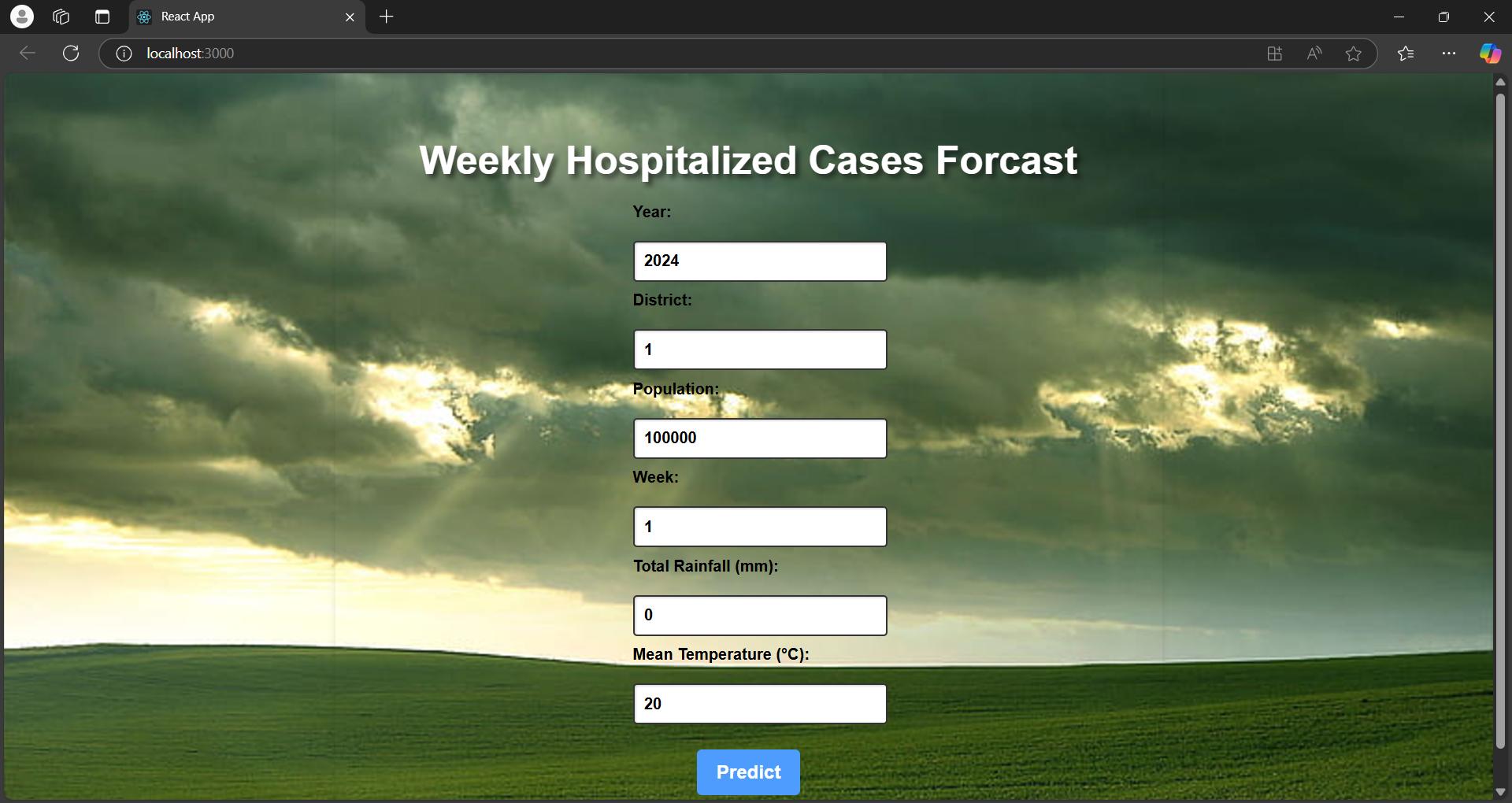 An application to forecast weekly hospitalized cases using temperature and rainfall data with time series models.